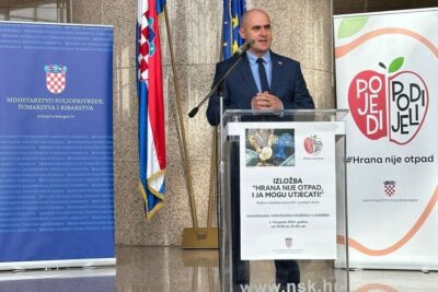 „Zadovoljstvo mi je sudjelovati na otvaranju još jedne izložbe, kojom četvrtu godinu zaredom obilježavamo Međunarodni dan osviještenosti o gubicima i otpadu od hrane. U 2023. godini je donirano oko 1.800 tona hrane, što je porast od 19% u odnosu na prethodnu godinu. Na svakome od nas je dio odgovornosti da spriječimo i smanjimo nepotrebno bacanje hrane. Samo zajedničkim djelovanjem i razmjenom znanja i iskustava možemo napraviti značajne iskorake. Stoga se zahvaljujem školama koje su ovogodišnji izlagači na manifestaciji i želim im čestitati na izvrsnim i poučnim materijalima koje su pripremili, a pomoću kojih se svi mi možemo educirati i dobiti poučne informacije i savjete. Teško je mijenjati ljude koji su već formirani, ali uz ovakav pristup problematici svatko može pridonijeti smanjenju otpada od hrane. Vjerujem da će budućnost pokazati kako su upravo mlađe generacije nositelji ekološke svijesti i budućnosti Hrvatske“, rekao je ministar Dabro.