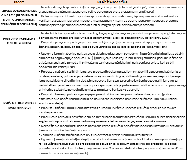 Sažetak i primjeri najčešćih grešaka u postupcima javne nabave: