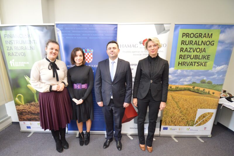 Ministrica poljoprivrede, Marija Vučković i ravnateljica Agencije za plaćanja u poljoprivredi, ribarstvu i ruralnom razvoju Matilda Copić potpisale su danas, 11. prosinca 2019. godine, izmjene i dopune sporazuma o financiranju s predsjednikom Uprave HAMAG-BICRO-a, Vjeranom Vrbancem i članicom Uprave Marijanom Oreb, čime se omogućuje nastavak provedbe financijskih instrumenata PRR 2014.-2020.: Mikro i Malih zajmova za ruralni razvoj te Pojedinačnih jamstava za ruralni razvoj za koje je sada dostupno više od 384 milijuna kuna.